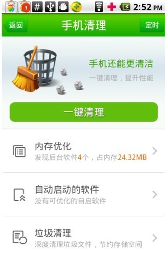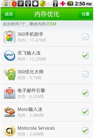 主界面->手机清理->内存优化,检查是否勾选“讯飞输入法“,如图所示: