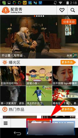 1)打开配音秀(点击下载),点击下方中间的【麦克风标志】进入素材选择页面。(如下图)