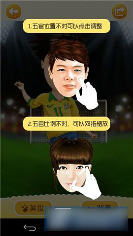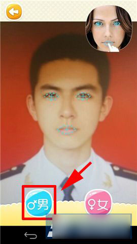 2)拍摄一张人脸照片然后分别定位眼睛和嘴巴,选择【性别】,然后在自动生成的形象可以调节五官位置和比例。(如下图)