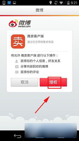 1)首先先登陆“微卖”,然后在然后在“用微博账号登录”中点击进去,然后输入微博账号,然后点击“登陆”。(如下图所示)