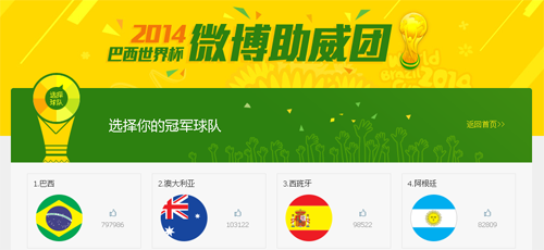 2014巴西世界杯盛大开幕了,腾讯微博特别推出“世界杯微博助威团”活动,猜比赛结果,获抽奖机会,8888Q币等你来拿,赶紧来选择支持的球队吧。