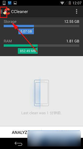 1)首先打开“CCleaner”,然后在左上角的三横中点击进去。(如下图所示)