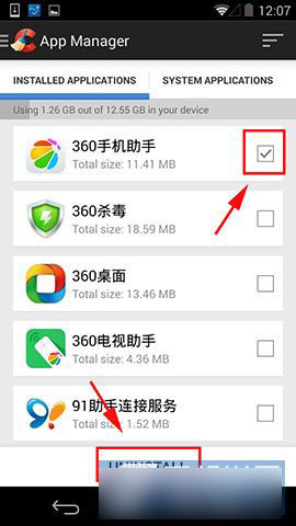 3)在需要卸载的软件后面打上“√”,然后点击“UNINSTALL”就可以成功的卸载到软件了。(如下图所示)