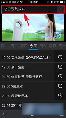 2)进入后视频播放窗口放的是即时的直播方面,大家可以在下方根据节目单进行选择,点击一下即可。预约成功的话会在界面顶部提示【你已预约成功】的字样。(如下图所示)