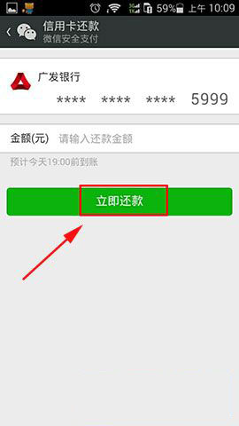 3)每个月的当天我们就可以输入信息提醒,然后我们点击“信用卡还款”,然后在需要还款的信用卡中点击一下,输入需要还款的金额。然后点击“立即还款”就可以完成微信信用卡还款了。(如下图所示)