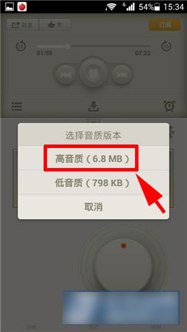 2)在展开菜单中选择【下载】,然后选择下载的音质版本,就可以把节目下载下来以供离线收听了。(如下图)