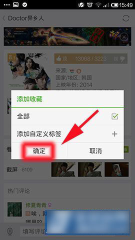 2、按上面操作完以后大家进到一个单视频画面,在小编框着的地方就是收藏的标志,点击一下就会出现一个“添加收藏”的小方框出来,再全部的地方打上勾号(如已打上勾就无需再点击),接下来在按下确定。(如下图所示)