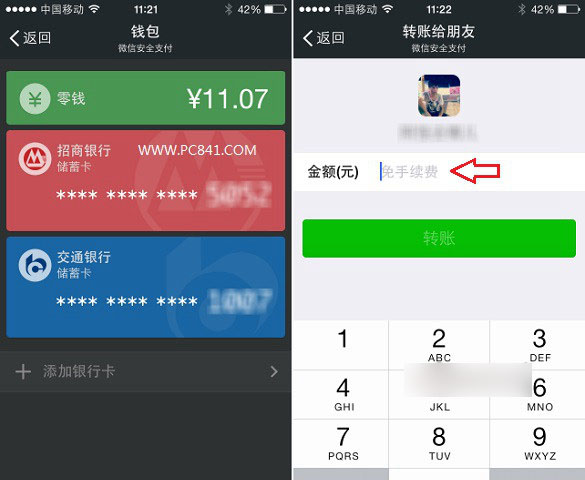 微信支付转账免费