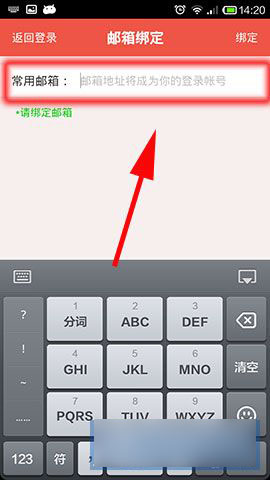 3)上面所示:点击进去以后大家点击“授权并登陆”,点击以后他会跳转到一个“邮箱绑定”的界面,把自己的QQ邮箱输入点击右上方绑定。(如下图所示)
