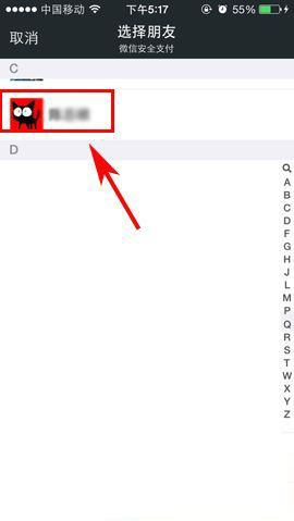 2)点击【转账】后会跳转到【选择好友】界面,选择需要转账的微信好友,然后输入【转账金额】点击【转账】。(如下图所示)