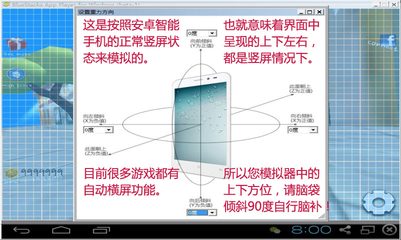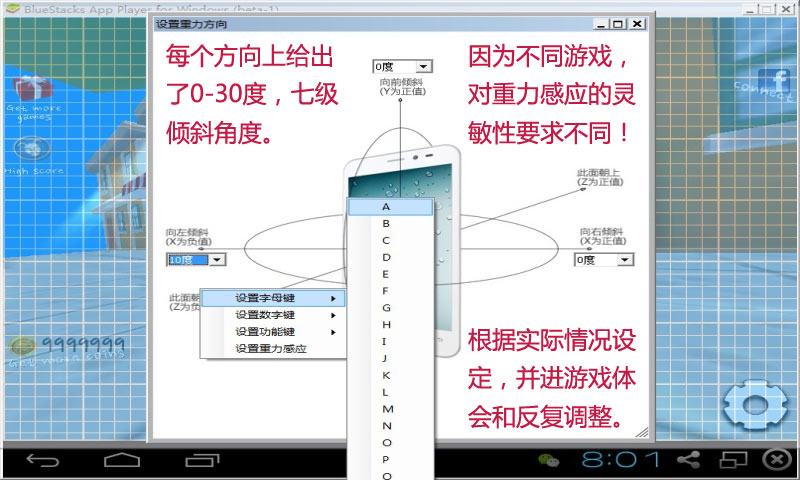 8、此外,有不少安卓游戏根据安卓智能手机内置陀螺仪的特点,增加了重力感应的功能,之前这些游戏是在蓝手指安卓模拟器中放弃的,现在也一样可以玩起了!
