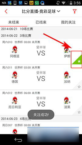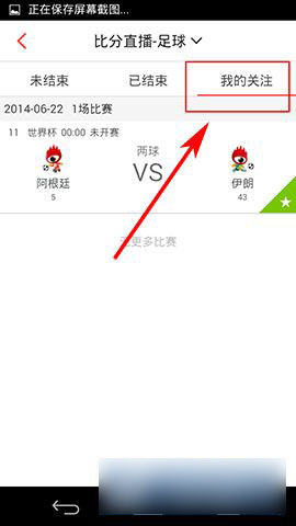 2)点击你要关注的球赛,点击【星星】按钮,最后点击【我的关注】即可查看。(如下图所示)