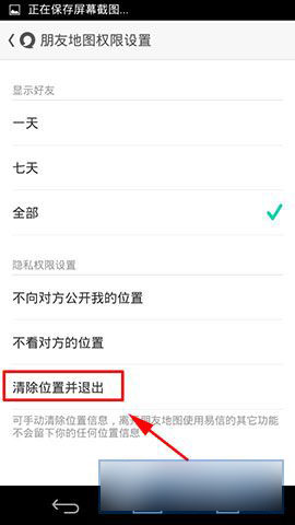 2)在【朋友地图】中点击右下角的设置图标,然后在【清除位置并退出】中点击进一下,就可以成功的清除掉位置信息。(如下图所示)