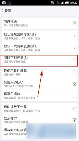 2)上面所示:点击以后屏幕左侧会弹出个新版块,点击【设置】。点击进去以后点击【同时下载任务】。(如下图所示)