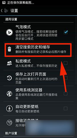 2)上面所示:点击以后屏幕左侧会多出一块板块然后点击【设置】,最后大家点击【清空搜索历史和缓存】即可完成!(如下图所示)