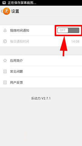 2)上面所示:点击以后会弹出个新版块点击屏幕右上方【设置】,然后点击【锻炼时间通知】后方按钮(ON开启、OFF关闭)!(如下图所示)