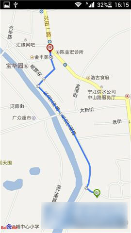5)回到刚才的【详情】以及【导航】选择窗口,选择【导航】的话,应用会自动为用户规划行进路线,同样的,【竖着拿】手机,是通过摄像头实景显示周边环境以及行进路线,行进方向由中下方箭头引导,【横着拿】手机,手机进入地图模式,规划的行进路线一目了然。(如下图)