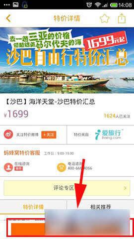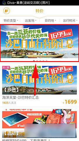 1)首先在手机桌面打开【蚂蜂窝特价】,然后点击自己喜欢的旅游。(如下图所示)