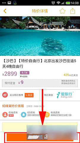 2)上面所示:进去以后点击下方立即预订,然后选择自己认为合适的预定信息点击进去。(如下图所示)