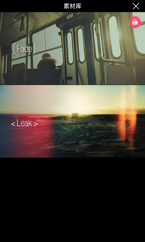 2、进入之后,这就是柚子相机的素材库啦,你会发现上面的特效素材包有一把锁,那就说明需要解锁。我们点击这个锁的按钮