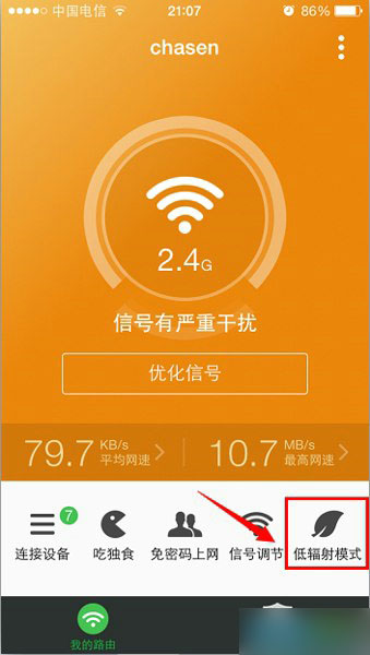 打开360安全路由找到“低辐射模式”如下图所示