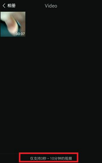 4、选择文件夹之后就能选择视频,要注意的是仅支持3秒-10分钟的视频。