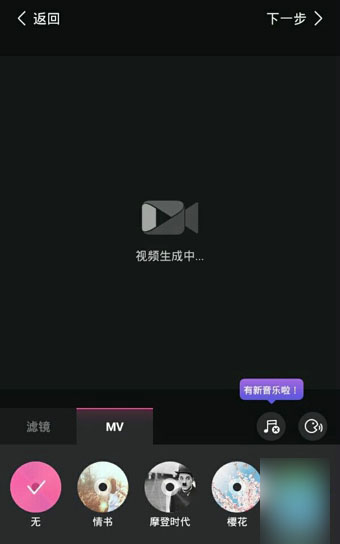 6、之后就到“正常”的界面了,添加滤镜、MV、音乐等等,点击“下一步”