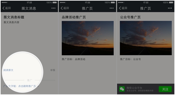 广告将展示在公众帐号图文消息底部,以文字链接形式出现