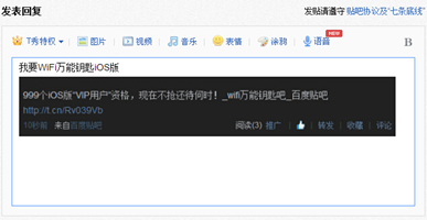 3.. 在本帖中回复“我要WiFi万能钥匙iOS版”,并附上转发的截图(有截图才为有效楼层)