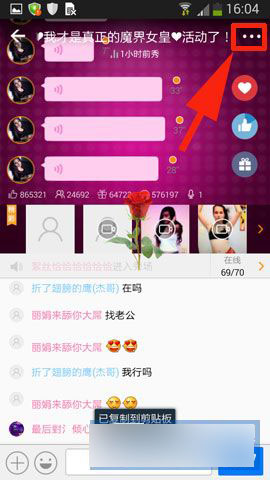 2)接着点击房间进入到房间里面,进去以后点击屏幕右上方【菜单】。(如下图所示)