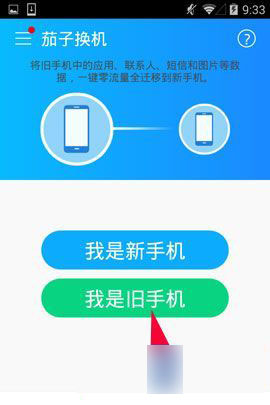 2)打开之后点击屏幕底部的【茄子换机】,然后会出现【我是新手机】【我是旧手机】,那么在这里就要注意,你要传文件的手机就点【我是旧手机】,要接收的手机就点【我是新手机】(如下图所示)