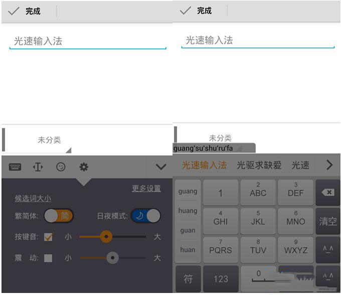 夜间皮肤是为经常在夜晚打字输入的用户提供的。现在许多网友都有睡前玩手机的习惯,一般关灯后视线昏暗,在这种环境下看手机屏幕久了眼睛会累,而在使用光速输入法的时候,只要将夜间皮肤模式开启,就会降低输入界面的亮度,可以很好的保护视力。打开设置界面,将日夜模式开启,就可以打开该功能。