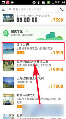2)在菜单栏里首先要自己注册(这里省去注册方法),注册完之后登陆,然后在主页面选择自己所要订的旅游项目(如下图所示)