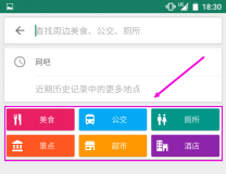 而原来首页的美食,酒店等六大标签则放到了搜索界面,这一改变感觉让搜索变得更加的简洁化。