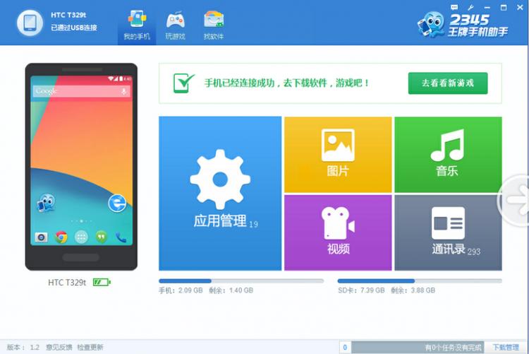 2345手机助手目前只支持安卓手机系统,有PC版和移动版,分别可以在PC端和移动端进行使用。