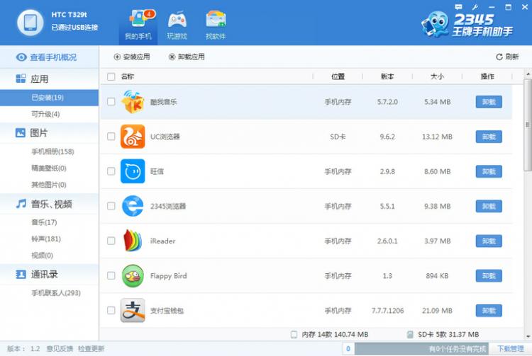 可以实现对手机图片、视频、音乐以及铃声,通讯录的管理!!让您管理手机更方便快捷。