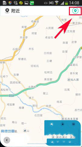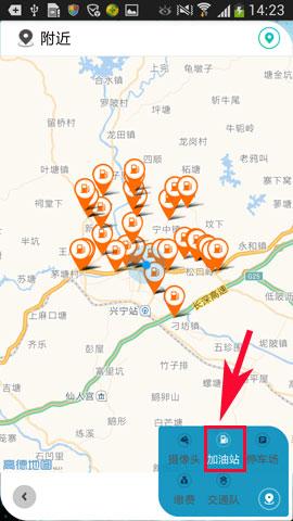 2)点击左上角确定自己位置,然后点击右下角【加油站】