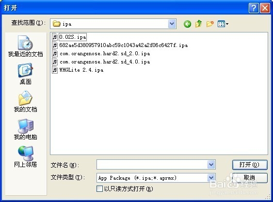 之后你找你下电脑上的ipa文件路径,我已经找到我电脑上的ipa文件,如图