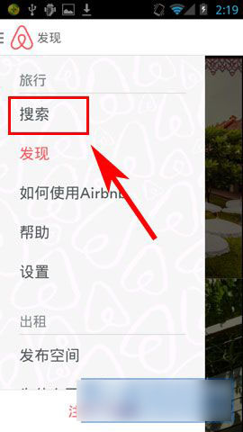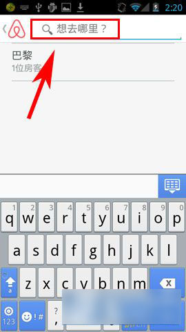 1)点击打开自己手机Airbnb,点击右上角选择【搜索】自己想要去的地方(如下图所示)