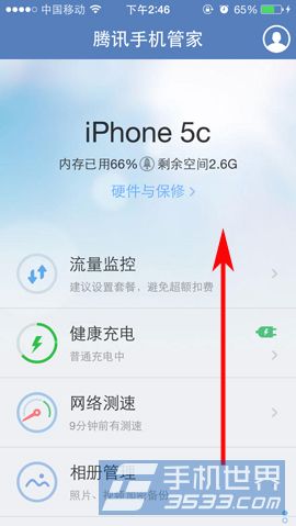 1)首先,大家可以下载个【手机管家】(点击下载),安装后点击打开,在主界面里用手向上滑动。(如下图所示)