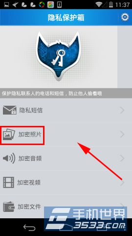 1)安装并打开隐私保护箱,在面板中选择【加密照片】(如下图)