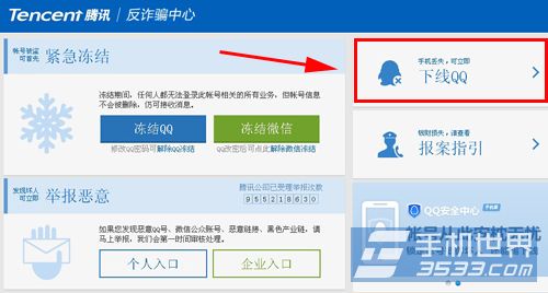 2)这里显示的是腾讯的反诈骗中心,现在打开右边的【手机丢失,可立即下线QQ】(如下图)