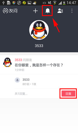 2)输入自己想提出的问题,点击【>】,回到主界面点击【铃铛】便可看到提问跟答复了。(如下图)