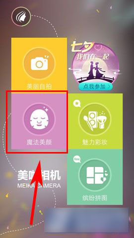 1)打开美咖相机,点击【魔法美颜】(如下图所示)