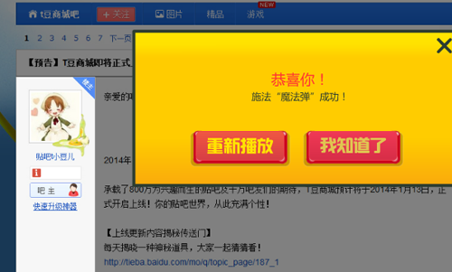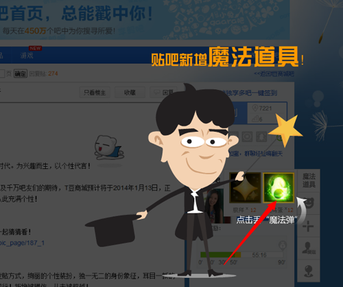 1、进入一个贴吧后,再进入一个主题,然后在右侧可以发现有一个魔法道具的按钮,点击后选择魔蛋进入