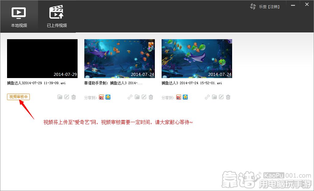 8、上传成功后,由于视频网站需要对您的视频进行审核,所以请耐心等待:
