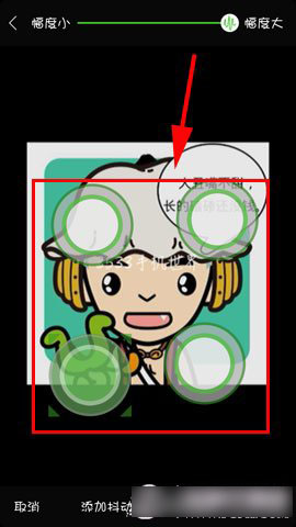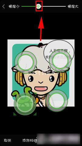 3)接着大家可以将绿色圆圈望放到自己想要抖动的地方放好,在上方也可以选择抖动的幅度。