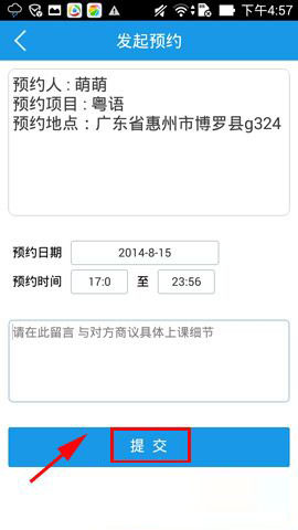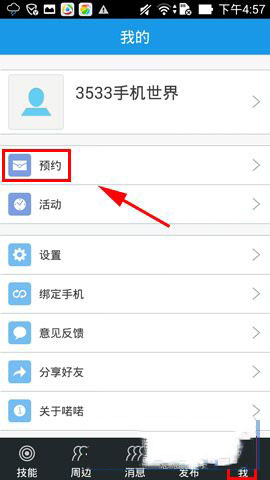 3)设置好日期及时间点击【提交】即可发出预约,返回主界面点击【我】选择【预约】。