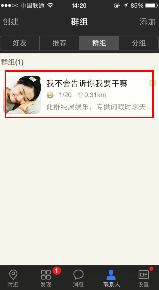 1、进入陌陌。点击联系人-群组,然后进入自己的陌陌群。