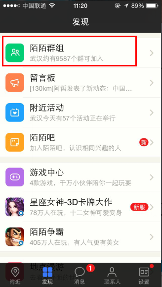 1、进入陌陌-发现-陌陌群组。